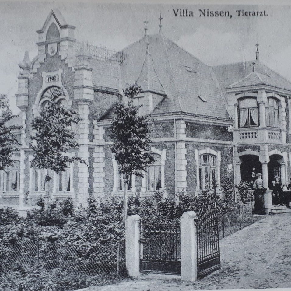 Die Jugendstil-Villa, die heute das Erscheinungsbild unserer gastronomischen Einrichtung prägt, wurde 1903 als Gebäude mit angewinkelter Scheune von dem Tierarzt Dr. Nissen erbaut.